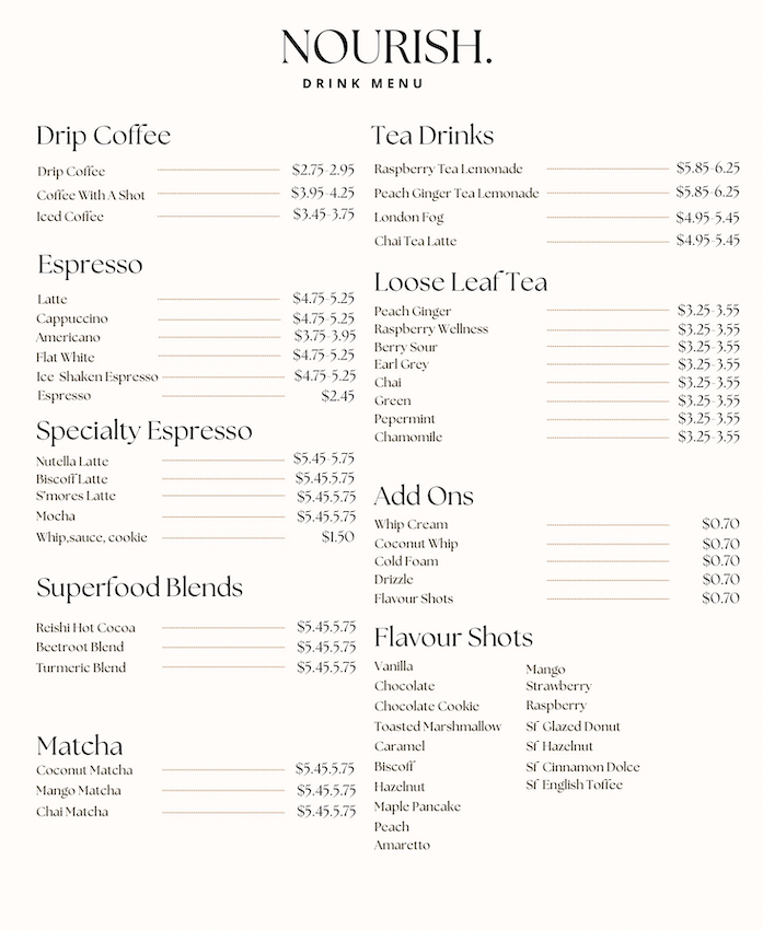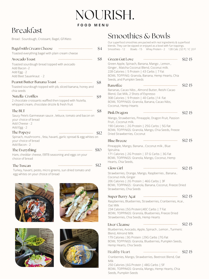 Nourish Menu